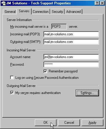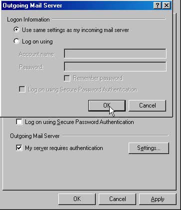 ...continue pictorial for setting up your account using the e-mail client - Outlook Express.